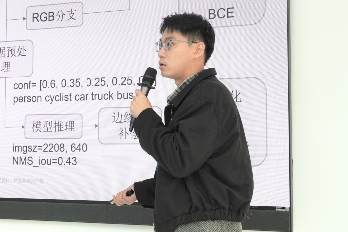 大赛围绕 “轻量化双光目标检测” 与 “基于大模型的图像与场景生成” 两大尖端赛题展开,入围选手们在答辩中,从算法优化、数据集构建到未来改进方向,进行了详尽阐述与深度思辨,充分展现了扎实的科研功底与卓越的创新思维。